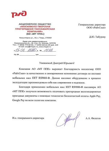 Мобильная касса "МКАССА RS9000Ф" уже в электричках страны